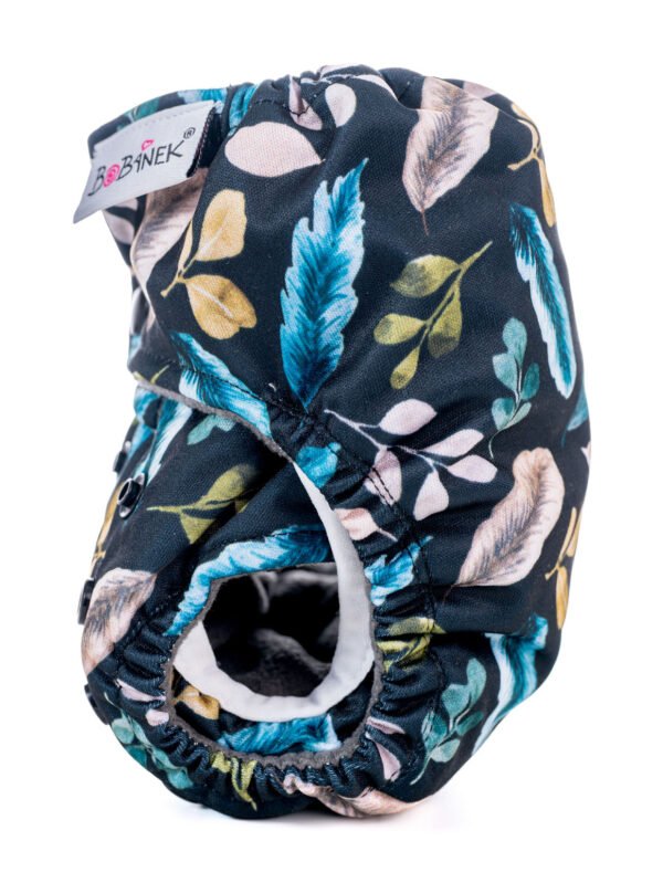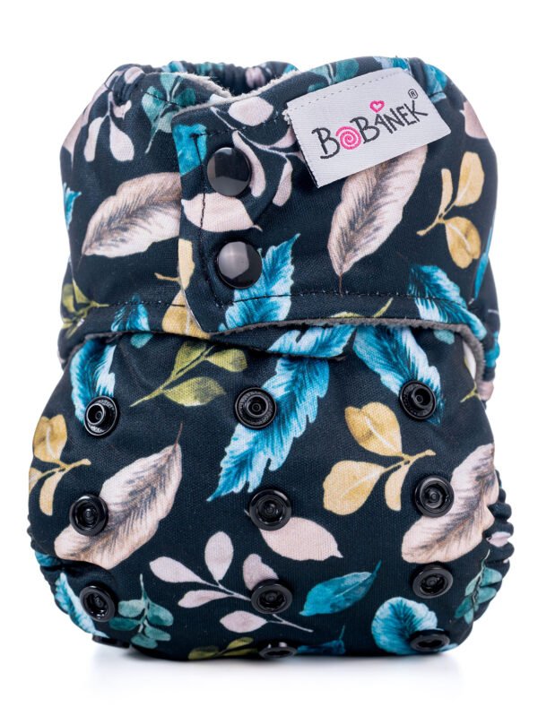 Novorozenecká plenka Bobánek typu AIO je ideální pro novorozence díky svému savému jádru, křidélkům z PUL materiálu, které brání protékání a extra kapse pro vložení vkládací pleny. Velikost plenky lze nastavit pomocí patentek, vnější strana je z voděodolného a prodyšného materiálu PUL a vnitřní strana z tmavého fleecu. Plenka se doporučuje prát bez aviváže a používat v kombinaci s bambusovými separačními plenami pro zachycení nečistot.