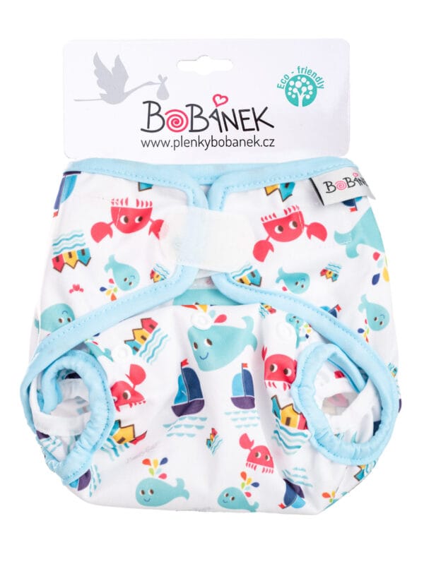 Svrchňáčky Bobánek se zapínáním na suchý zip, jsou vyrobené ze 100% polyesteru s polyuretanovým zátěrem jsou nepropustné, ale přesto prodyšné. Kalhotky jsou opatřeny patentkami pro snadnou úpravu velikosti. Sedí miminku zhruba od 5 kg až po batole. Jsou vhodné na všechny typy plen jako jsou čtvercové, vícevrstvé i kalhotkové.